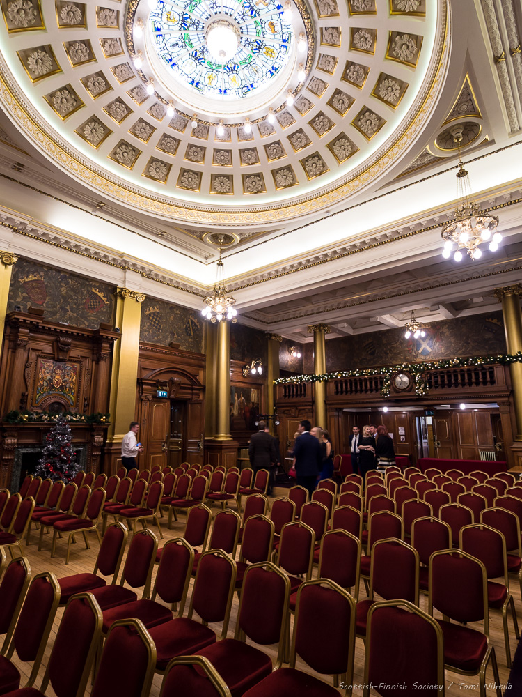 To mark the very special year for Finland, the celebration was organised by the Honorary Consulate in Edinburgh and took place in the beautiful surroundings of The Signet Library in the city centre. This was a champagne reception with entertainment provided by Glasgown Laulu choir and an ensemble from the Scottish Chamber Orchestra playing Sibelius.